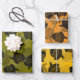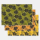 Holzschnitt der Eichenholz-Eichen auf dem Packpapier in Ihrer Wahl der Herbstfarben. Hier in Grün, Orange und Herbstgelb dargestellt.