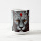 Eine auffallende Abbildung eines Panters, gerahmt in einem kreisförmigen Design, verbunden mit Zweigen und rote Rosen. Die Stirn des Panther ist mit einem roten Edelsteinsymbol markiert, das ein Element des Mystiken hinzufügt. Die Gesamtästhetik verbindet natürliche Elemente mit einem Sinn für Fantasie und Symbolik.