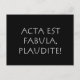 Acta est Fabula Plaudite. Das Stück ist überglücklich. Ein lateinisches Zitat von Weisheit und Philosophie, das heute noch gültig und wahr ist.