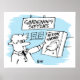 Cartoon mit sonniger Gartenarbeit. Ein Mann, der in einem Gartencenter einkauft, findet einen "Action Gnome" im Regal. Geschenk für einen Gärtner.
