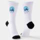 Socks with a blue mountain and sun in front of blue sky with the possibility to add your own text (ski resort or hiking mountain).