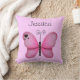 Dieses Kissen fügt eine einzigartige Touch jedem möglichem Mädchenschlafzimmer hinzu. Ausrüstungsbeschreibungen ein hellrosa hinterer Boden mit einem rosa Schmetterling auf der Front, die Herzen auf seinem Flügel hat und irgendein Text Ihres Wählens! Addieren Sie ihren Namen oder jede kurze Phrase. Auf der Rückseite dieses Kissens ist ein Herz mit einem motivierend Zitat, "gerade als die Raupe dachte, dass seine Welt beendete… sie wurde ein Schmetterling."