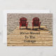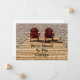 Adirondack Liegestühle bewegen Karten. Rustikal ländlich braun bordeauxrot, rot, modern, schick, trendig, einzigartig. Personalisierte Gestaltung des Ruhestandstils. Phrase: "Wir sind in die Hütte gegangen". Passen Sie Ihre Typografie nach Größe, Stil, Farbe oder entfernen Sie sie, falls gewünscht. Bildrecht Marg Seregelyi Fotografie.