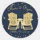 Gold adirondack Stühle und Sternenhimmel Design Aufkleber mit Namen und Datum. Ändern Sie Text und Hintergrundfarbe wie gewünscht.