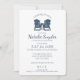 Marineblau Adirondack-Stühle zum Thema Strand Brautparty mit blauen und weißen Streifen auf der Rückseite dieses eleganten und klassischen Polterabend Einladung für die künftige Braut und Bräutigam. Personalisieren Sie wie gewünscht.