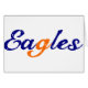 Bronson Eagles T - Shirt, Tasse, Taschen, Tasten, Aufkleber, Magnete, die das Wort Adler in einem Schriftart mit blauem Schriftzeichen geschrieben mit dem Buchstaben G in Orange.