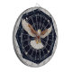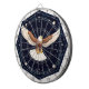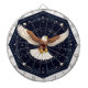Illustration eines in die Höhe schießenden Adlers in einer nächtlichen himmlischen Umgebung, mit detaillierten Sternmustern und kosmischen Motiven in einer symmetrischen Komposition verziert.