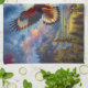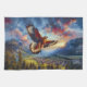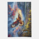 Ein schöner Adler steigt über eine noch schlaflose Stadt, wenn die Sonnen über den Berg hinauf kommen.