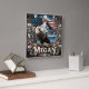 Adler mit Berg und amerikanischer Flagge Quadratische Wanduhr
