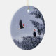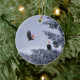Bald Adler mit Weihnachtsmannmützen in einem Wald mit Schnee auf einer Keramik Weihnachtsschmuck. Ideal für Naturliebhaber!