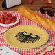 Dieses Adlerdesign von Richard H. Fay schmilzt das moderne und das mittelalterliche. Es wurde sowohl von dem modernen bundesstaatlichen Adler als auch von verschiedenen mittelalterlichen Heraladlern inspiriert.
