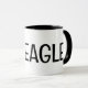 Bald Eagle - Ein Cartoon Adler mit weißen Federn auf seinem Kopf, Vektorgrafik Stil, Vollkörperporträt, einfache Linien, einfach zeichnend Striche, schlichter Hintergrund, niedlicher Ausdruck, Es hat ein wütendes Gesicht und ist stehend.