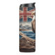 Ein majestätischer Adler thront auf einem Holzarm vor einer lebhaften Kulisse von Ozeanwellen und steil ansteigenden Berggipfeln, hinter der eine patriotische Fahne flattert. Diese atemberaubende Szene vereint das Wesen von Stärke, Einheit und Naturgrandeur - Wildnis, Landschaft und Nationalgeist in einem kraftvollen Bild.