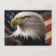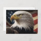 Bald Adler in Alarmbereitschaft vor einer schwindenden amerikanischen Flagge.
