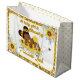 🌻 feiern Sie Ihre kleine Sonnenblume mit unserer Afroamerikanerin Sonnenblume Baby Dusche Große Geschenktasche. Diese bezaubernde Tasche ist ein beliebtes Kindermädchen mit niedlichen Ponytails nach dem Puff, einem gelben Schnuller und einem ruffelfarbenen Windschutz, der in ruhiger Atmosphäre auf einem Bett mit blühenden Sonnenblumen schläft. 🌼 😴 Eine freundliche kleine Hummel 🐝 in einem Herzmuster in der Nähe flimmert, was die Süße noch verstärkt. Die Vorderseite zeigt einen glänzenden goldenen Glitzer-Hintergrund ✨, während die Seiten mit schönen gelben Polka-Punkten geschmückt sind. Ideal für Sonnenblumen- oder Gartenduschen 🌻 🌿, der gelbe, braune, grüne und goldene Glitzer wird jedes Fest aufheitern. Mit dieser wertvollen Geschenktasche können Sie eine Touch Sonnenschein zu jeder Babydusche hinzufügen.