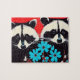 Adlige Raccoons mit blauem Blumenhintergrund Puzzle