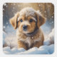 Adlige Weihnachts Welpe auf einer schneebedeckten Quadratischer Aufkleber