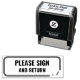 The professional self inking stamp provides a clean and authoritative way to manage office documentation with efficiency. The design features bold sans serif typography with the clear instruction to “please sign and return”, ensuring that important paperwork is processed quickly and correctly. A sleek double border with rounded corners frames the text, adding a modern architectural feel to the layout. The inclusion of a minimalist pen icon in the bottom corner serves as a functional visual cue for the recipient. This high quality stamp produces a crisp, consistent impression every time, making it an essential tool for maintaining an organized and upscale office environment.