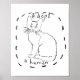 Adoptier einer niedlichen, schwarz-weiß zeichnend Katze, naive Kunst, weißes lineares zeichn und Text für Katzenliebhaber. Benutzerdefinierte Hintergrundfarbe.