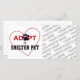 Obdachlose Tierbewusstsein fördern Dieses Original Adoptiere ein Shelter Pet Produktdesign mit rotem Herz und schwarzem Pfotendruck. Es ist ein einzigartiges Geschenk für Tierhalter und Tierliebhaber und fördert das Bewusstsein für die Adoption von Heimtieren! Anpassen oder Anpassen des Designs Kaufen Sie dieses Element, oder passen Sie den Text mit einem anderen Schriftart oder einer anderen Farbe an, oder fügen Sie ein anderes Bild hinzu.