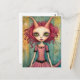 Adorable Alien Lady Mixed Media Collage Postkarte