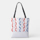 Carry your holiday essentials in style with this whimsical patriotic tote bag. The design showcases an adorable, fluffy baby eagle holding an American flag surrounded by festive red and blue stars. It is an ideal accessory for moms heading to a Fourth of July parade, fireworks display, or summer beach outing.
