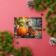 Dieses herzzerwärmende Halloween-Foto zeigt ein niedliches Baby in einem gestreiften orangen und schwarzen Outfit, das neben einem großen Kürbis sitzt und die spielerische Botschaft "Let's Get Batty Together" trägt. Die gemütliche Herbstkulisse und der personalisierte Familienname machen dieses Hotel zu einer idealen Adresse, um Halloween mit Lieben zu feiern. Ideal für Eltern, die das erste Halloween ihres Babys fangen möchten, oder für Familien, die gewollt haben, einen einzigartigen und ansprechenden Gruß an Freunde zu schicken. Die festlichen Herbstfarben und das skurrile Thema schaffen einen denkwürdigen Sake, der Halloween-Freude mit einer Touch Süße verbreitet.