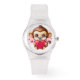 Adorable Baby Monkey hält ein rotes Herz Armbanduhr