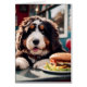 Ein bezauberndes Bernerdoodle am Abend mit einem Cheeseburger, den es bestellt hat, AI generierte Art Blank in Jeden Anlässen Grußkarte