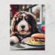 Ein bezauberndes Bernerdoodle am Abend mit einem Cheeseburger, den es bestellt hat, künstlerische künstlerische Intelligenz