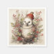 Adorable Bird Wear Red Cap Holly Red Berries Serviette