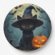 Adorable Black Cat Wear Hexenhut Pappteller