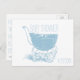Adorable Blue Baby Boy Carriage Retro Baby Shower 5.6" x 4.25" (Landschaft) Postkarte.
