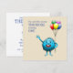Adorable Blue Creature mit Balloons Einladung