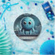 This design features a cute and fluffy blue creature with big round eyes, glowing slightly under a soft night lamp. The creature sits playfully on the edge of a bed, bringing a sense of comfort and whimsy to any room. Perfect for anyone who loves adorable, friendly monster designs, making it an excellent addition to home décor or fun apparel.