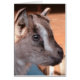 Eine leere Grußkarte im jeder Anlass mit einem Foto eines wunderschönen braunen Ziegenjungen, das sich im Wohnzimmer aufhielt, weil es in so jungen Jahren viel zu kalt war, um in der Scheune zu sein. Sie hat es sehr genossen fernzusehen und sich ihre Flasche zu besorgen.