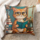 Adorable Cat Tragebrillen Lesen eines Buches Kissen