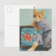 Adorable Cat With Goldfish on TV Retro Collage Postkarte