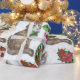 This adorable Cat Wreath wrapping paper is the perfect way to spread holiday cheer to any cat lover! Multiple cats, holly berries, and poinsettias are throughout the background, with a cat right in the middle of a Christmas wreath.