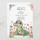 Diese hübsche Abbildung zeigt ein niedliches Cartoon-Babycrocodile, das fröhlich zwischen farbenfrohen Blume und schwimmenden Herzen sitzt. Mit hellen Augen, einem fröhlichen Lächeln und weicher grüner Haut bringt das Krokodil Freude und Wärme in die Szene