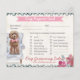 Mit dieser hübschen Dog Grooming Report Card, die eine süße Welpe-Illustration und ein stilvolles, blumengeschmücktes Design bietet, vermitteln Sie einen gepflegten Eindruck. Diese Karte eignet sich ideal für berufliche Haustiergroßhändler und ermöglicht es Ihnen, Ihren Pflegesalon einfach mit dem Namen und der Webadresse zu versehen. Damit ist sie ein personalisierter Touchpoint für Ihre Kunden. Die Karte enthält eine detaillierte Checkliste der Pflegedienste wie Bad, Brennen trocken, Nagelschneiden und vieles mehr, damit Ihre Kunden über den Wellness-Center ihres Freundes bleibe werden. Das Design ist funktionell und charmant, mit Räumlichkeiten, die den Hundenamen, den Groomer und das Datum ausfüllen, was es zu einem ansprechenden Sake für Haustier-Eltern macht. Ideal, um die Marke Ihres Salons zu verbessern und treue, glückliche Kunden zu schaffen. Diese Berichtskarte ist nicht nur ein großartiges Kommunikationswerkzeug, sondern auch eine schöne Erinnerung für Tierhalter, ihren nächsten Termin zu buchen. Personalisieren Sie es mühelos und fügen Sie Ihre Pflegedienste noch heute eine berufliche Touch hinzu!