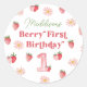 Mit unserem Adorable Daisy Pastel Berry First Birthday Girl Classic Round Sticker fügen Sie Ihrem Fest eine charmante Touch hinzu. Dieser Aufkleber mit süßen pastellfarbenen Erdbeeren und zarten Molkereien ist ideal zum Dekorieren von Gastgeschenken, Einladungen oder Dankeschön-Karten. Ideal für den ersten Geburtstag Ihres Mädchens, kombiniert es weiche Rot- und Grüntöne in einem ansprechenden Design, das niedlich und vielseitig für jede Beerenfeier ist!