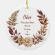 Dieses hübsche Ornament zeichnet sich durch ein Aquarellportrait eines bezaubernden gepunkteten Hirschfades aus, gerahmt in einem Herbstblumenschrei. Die Rückseite des Ornaments hat den gleichen Kranz, mit drei Textfeldern für Sie anpassen. Das ist zu jeder Jahreszeit ein wunderbares Geschenk für eine Enkelin, Tochter, Nichte oder andere.