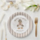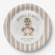 Celebrate a little one on the way with our charming “Waddle It Be?” round baby shower paper plate. Featuring an adorable gender neutral watercolor baby duck donning a sweet bow, set against a soft light brown watercolor wash, this design is as heartwarming as it is stylish. With a warm neutral palette of white, tan, and brown, and a coordinating striped pattern on the back, it’s the perfect blend of rustic charm and playful elegance for a gender reveal or baby shower. Created by Simply Farmhouse Press.