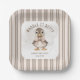 Celebrate a little one on the way with our charming “Waddle It Be?” baby shower paper plate. Featuring an adorable gender neutral watercolor baby duck donning a sweet bow, set against a soft light brown watercolor wash, this design is as heartwarming as it is stylish. With a warm neutral palette of white, tan, and brown, and a coordinating striped pattern on the back, it’s the perfect blend of rustic charm and playful elegance for a gender reveal or baby shower. Created by Simply Farmhouse Press.