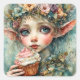 Adorable Elf mit Kuchen Quadratischer Aufkleber