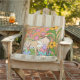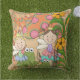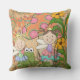 Kissen im Freien mit einem lustigen, sommerlichen, bezaubernden Design mit kleinen Gartenfeen, Pilzen, grünen Fröschen und Blume.