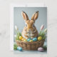 Diese wunderschöne Karte zeigt das niedlichste Kaninchen, das sich in einem Osterkorb mit Eierspeisen befindet. Sie können den Text in dieser Karte anpassen, um diesen Gruß wirklich persönlich zu machen.