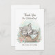 Baby Shower Thank you card features an adorable, fluffy baby wolf pup sleeping peacefully on a golden crescent moon. The background is a soft, dreamy night sky with gentle clouds and twinkling stars in pastel shades of blue and cream. The words "Thank You" are written below the moon in a simple, sweet, and clean font, matching the card's gentle and serene theme.
