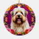 Adorable Fluffy Hund mit Blume Keramik Ornament